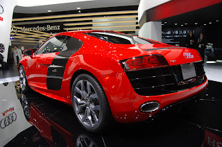 Car manufacturer,Audi always have something great and a brilliant idea for every motorshow.This year,in a Detroit Auto Show 2009,the come out with a supercar Audi R8 V10 5.2 FSI,addition to the sportback Concept.Power by the 5.2L V10 plucked from the Gallardo LP560-4 mounted amidships, the new R8 now packs 525 horsepower and 391 lb-ft torque. Exterior styling has been subtly updated and includes all-LED headlights, wide side sills, revised matte aluminum exhaust tips, and new 19-inch 10-spoke wheels.